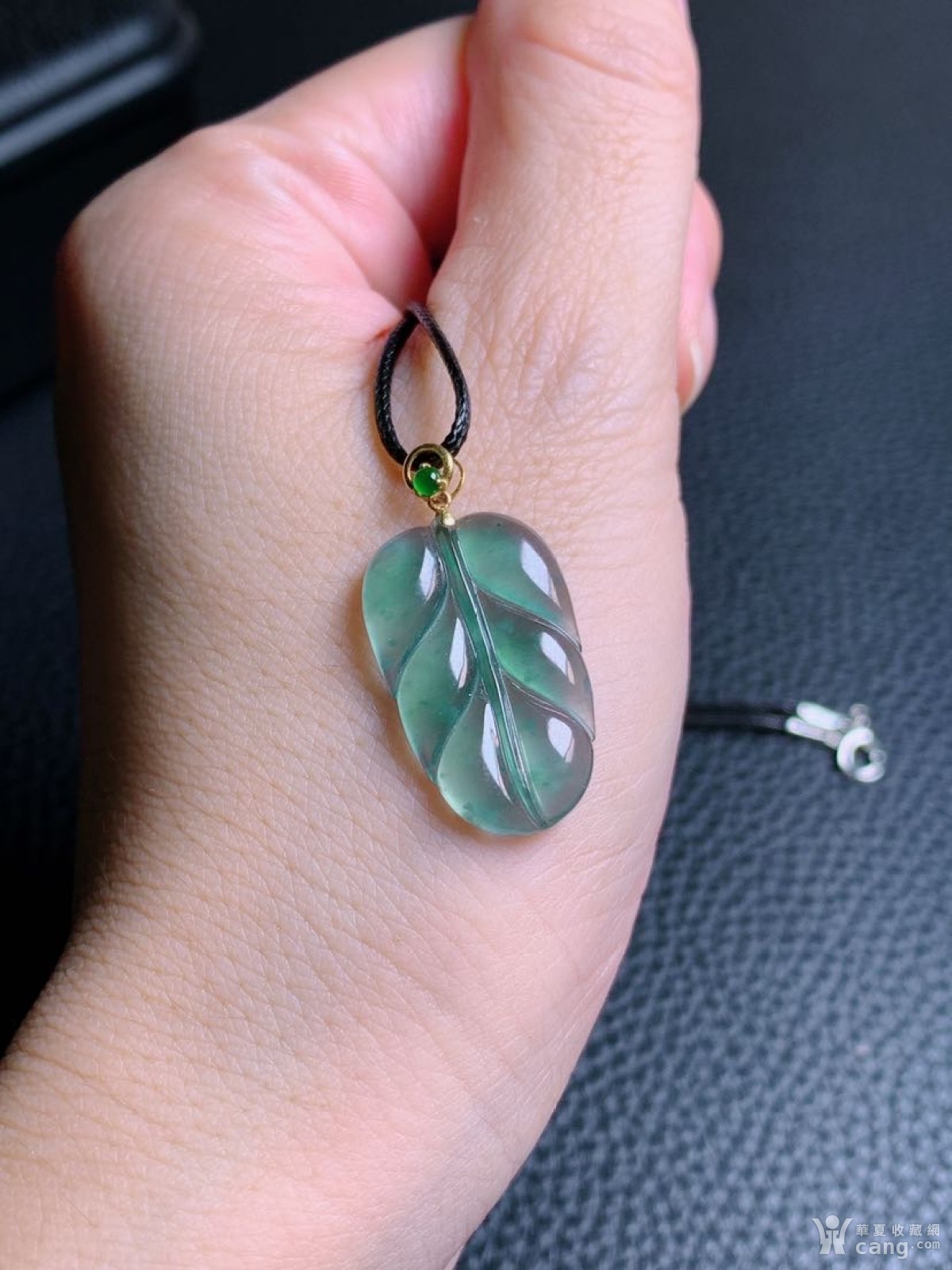 天然翡翠A货18k金镶嵌叶子玉吊坠