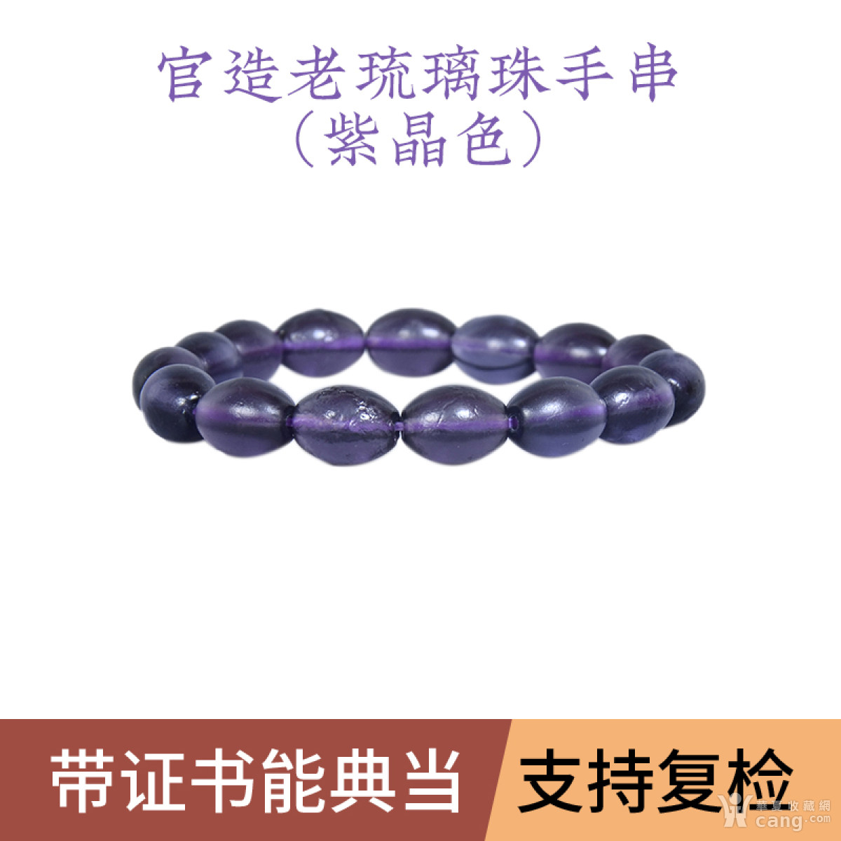 【保真能典当】清晚期 格格款椭圆型官造琉璃珠手串(紫晶色)