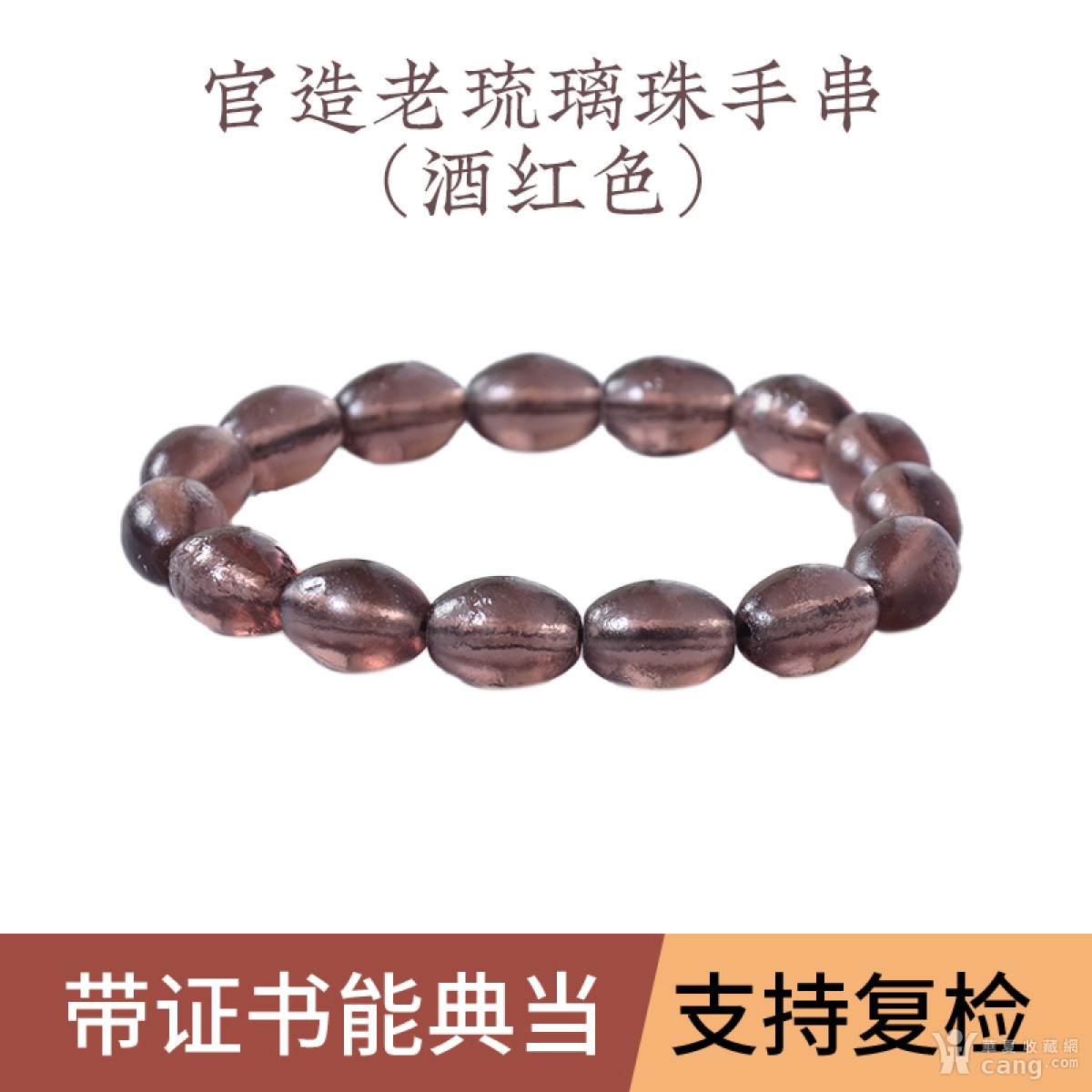 【保真能典当】清晚期 格格款椭圆型官造琉璃珠手串(酒红色)