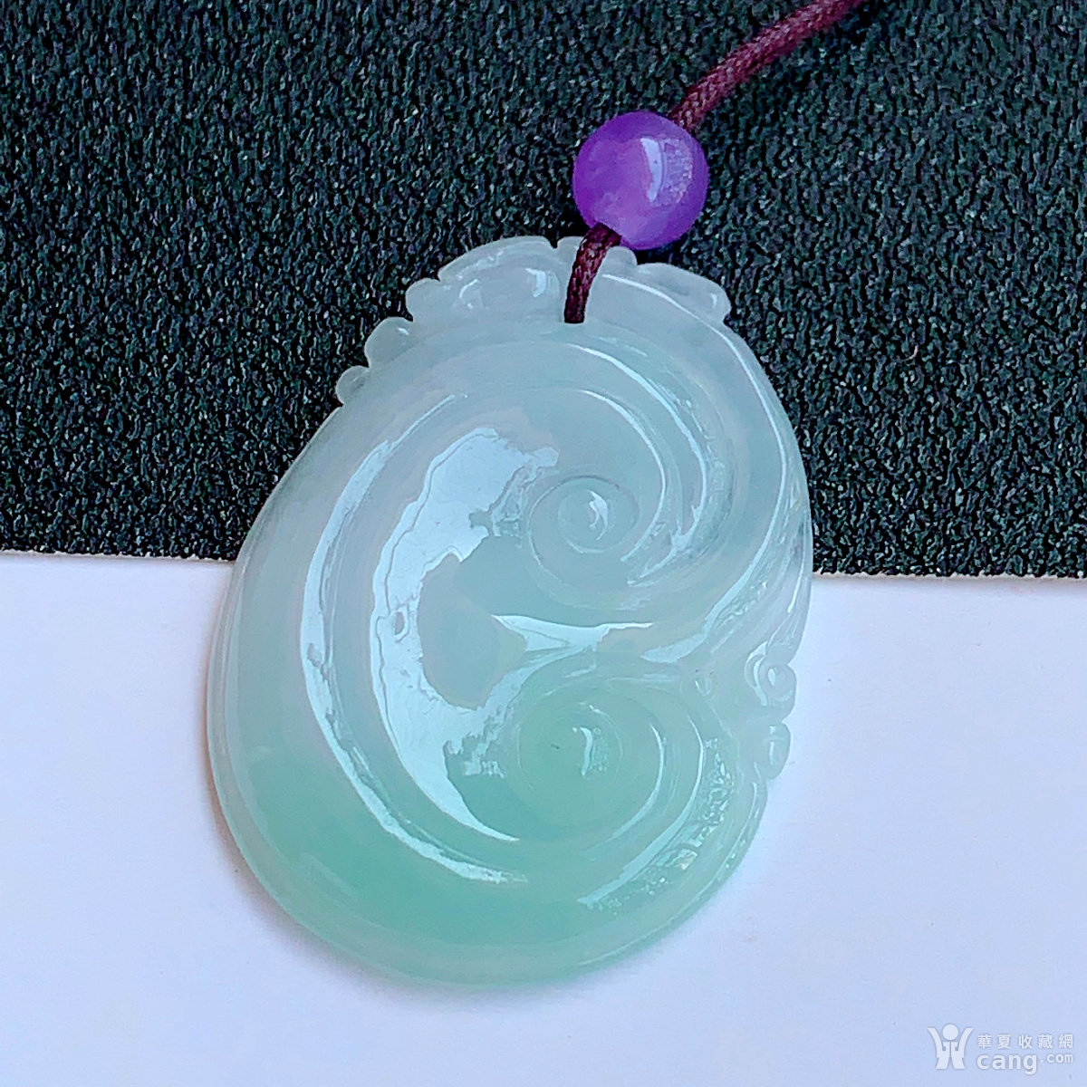 缅甸天然翡翠A货冰透水润带绿如意吊坠