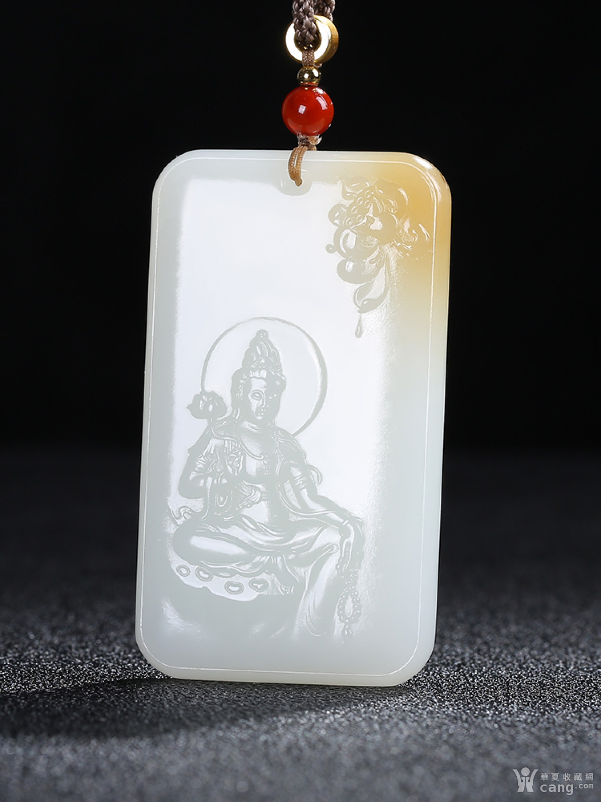 [羊脂白玉]和田玉糖白玉慈航普渡观音莲花仿古牌子吊坠58.6