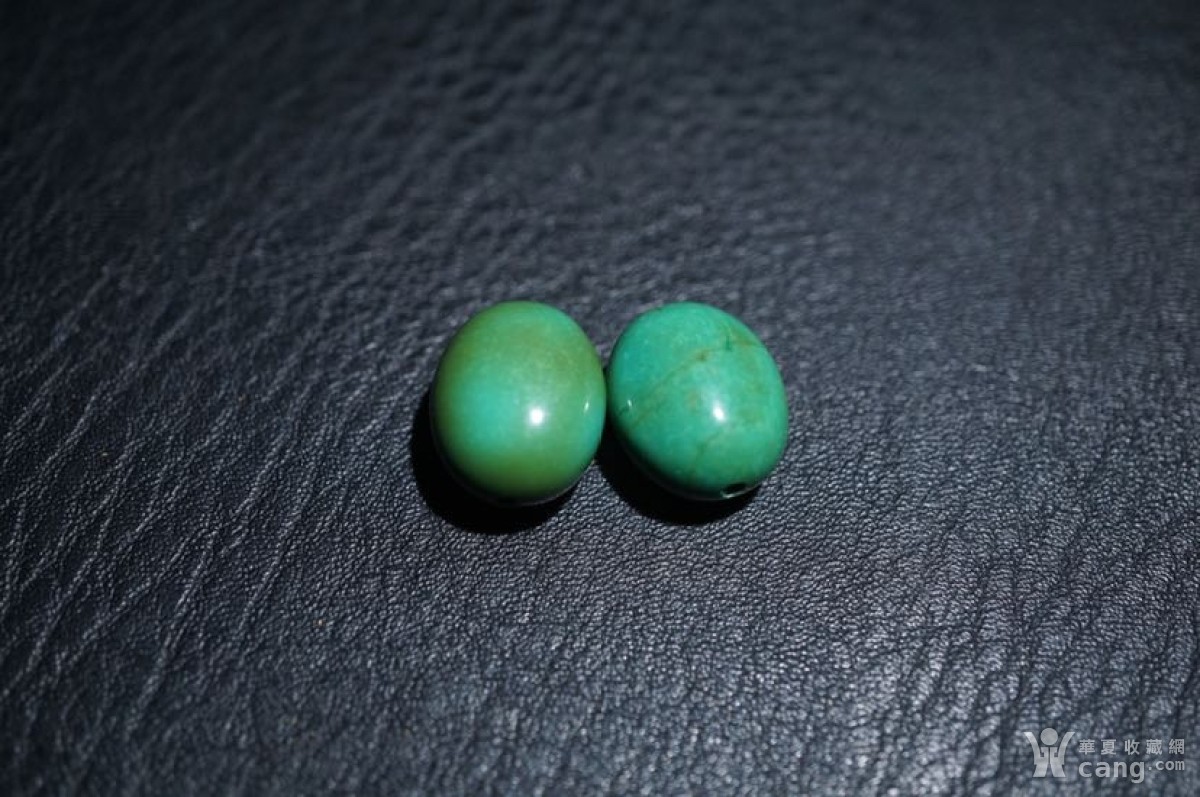 绿松 扁珠一对
