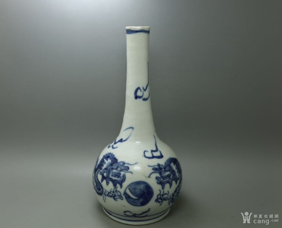 清 青花双龙戏珠瓶: