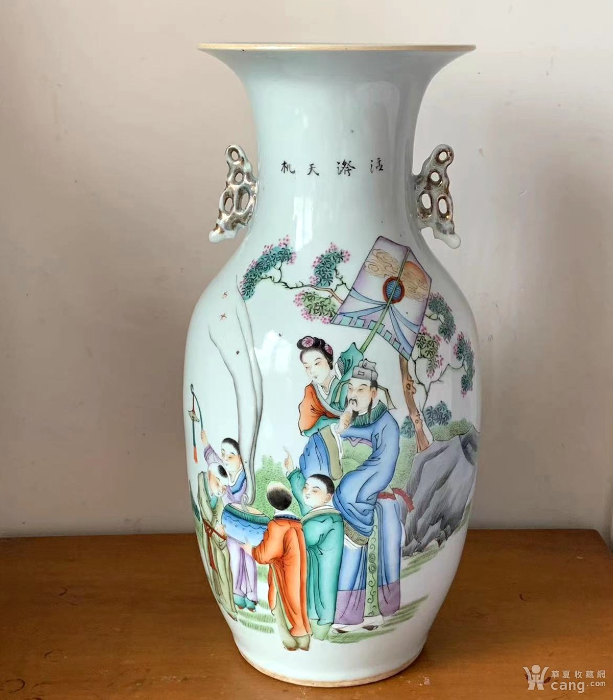 10491#古玩古董瓷晚清民国细路天官赐福大人物纹粉彩嫁妆瓶