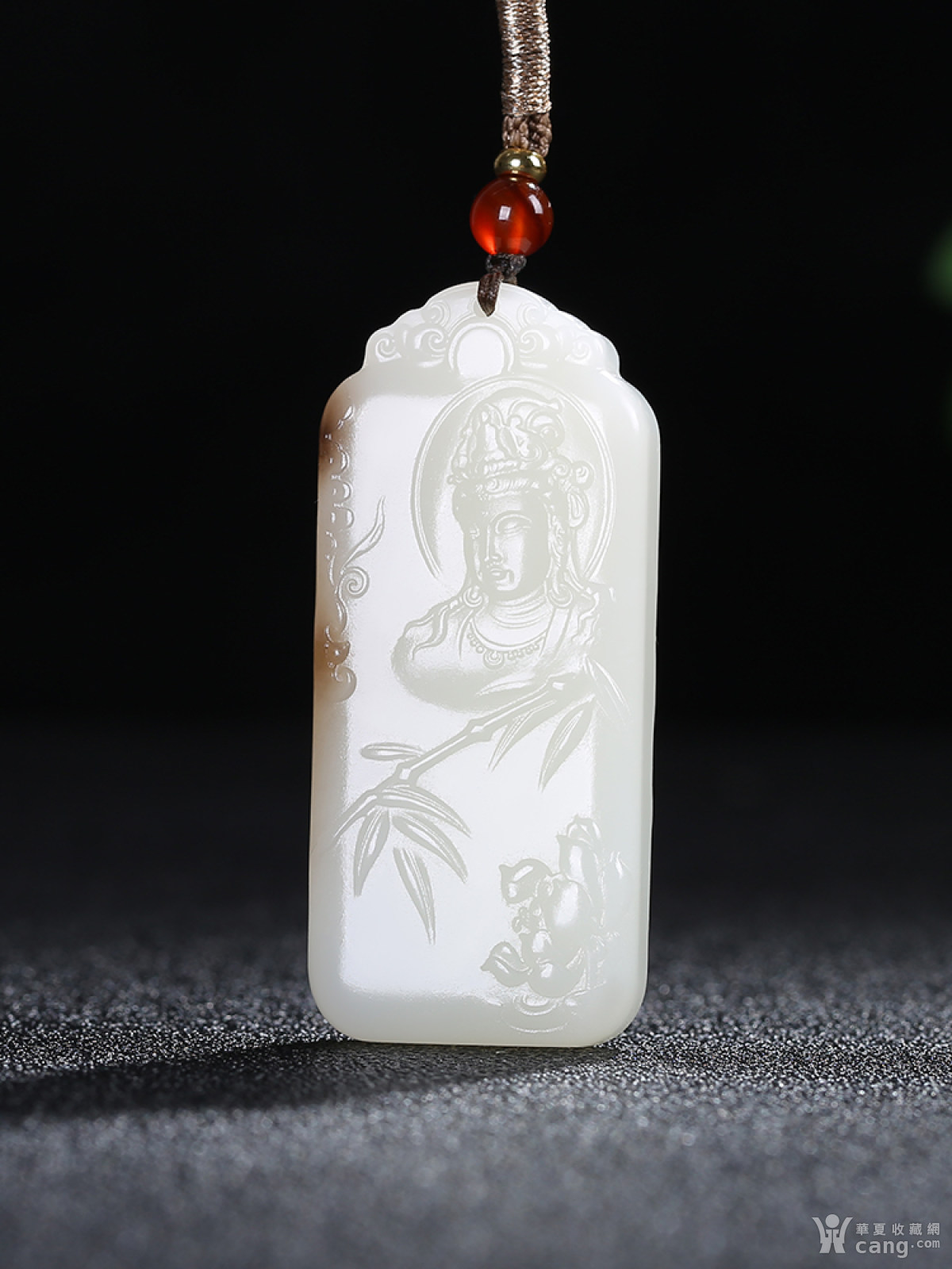 [羊脂白玉]和田玉糖白玉观音赐福蝙蝠莲花仿古牌子吊坠37.9