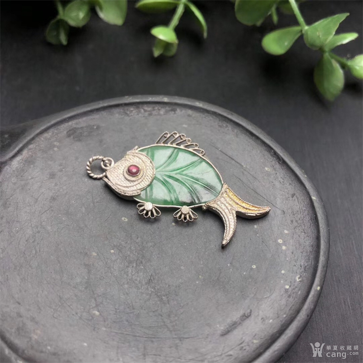 E332回流925银掐丝镶清代老翡翠鲤鱼挂件