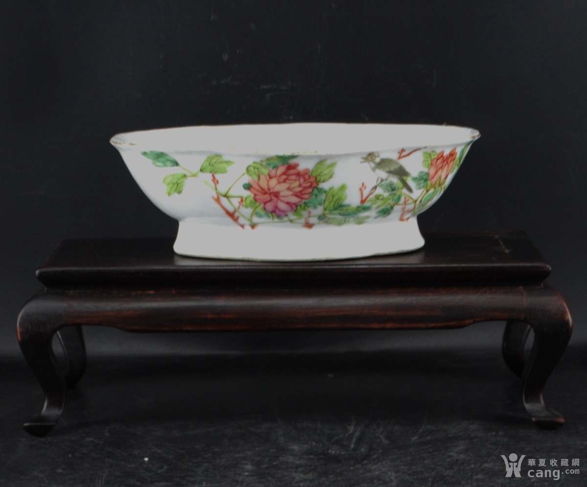 10481#景德瓷器收藏清代名家张子英富贵白头粉彩贡碗水仙盆