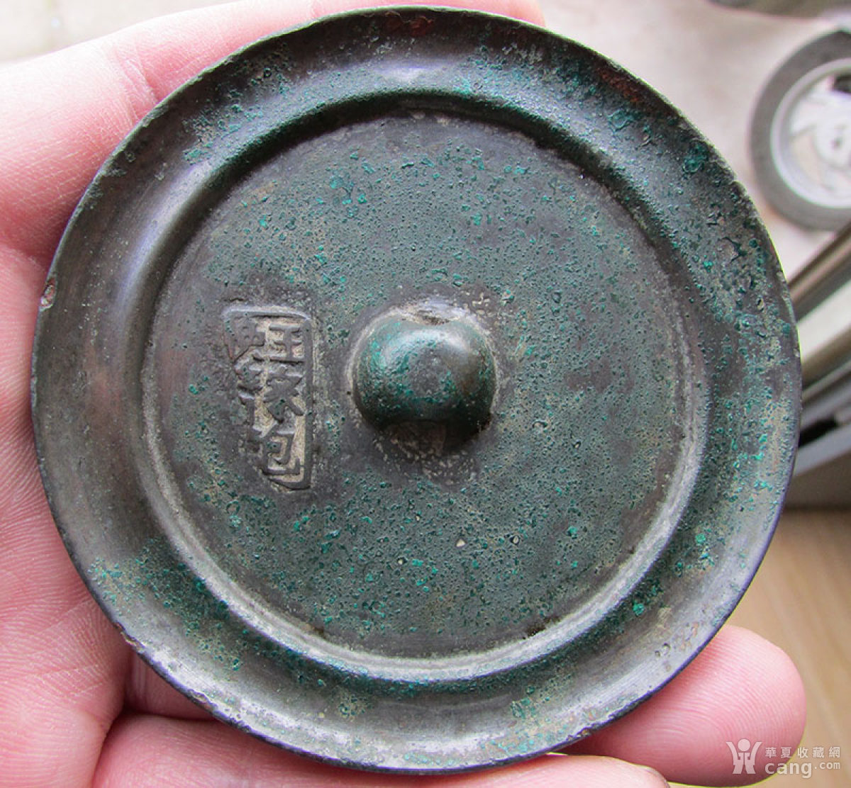 老铜带款小铜镜