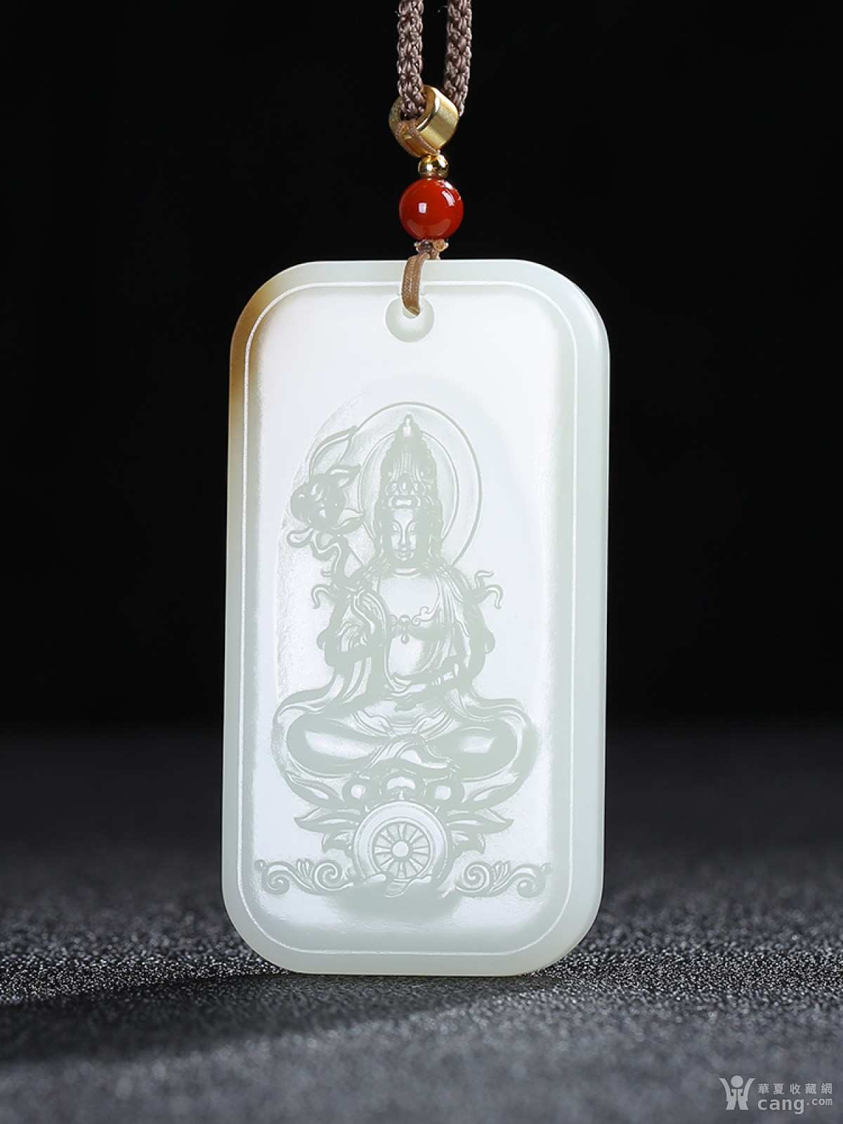 [羊脂白玉]和田玉糖白玉慈航普渡观音莲花牌子吊坠56.27g