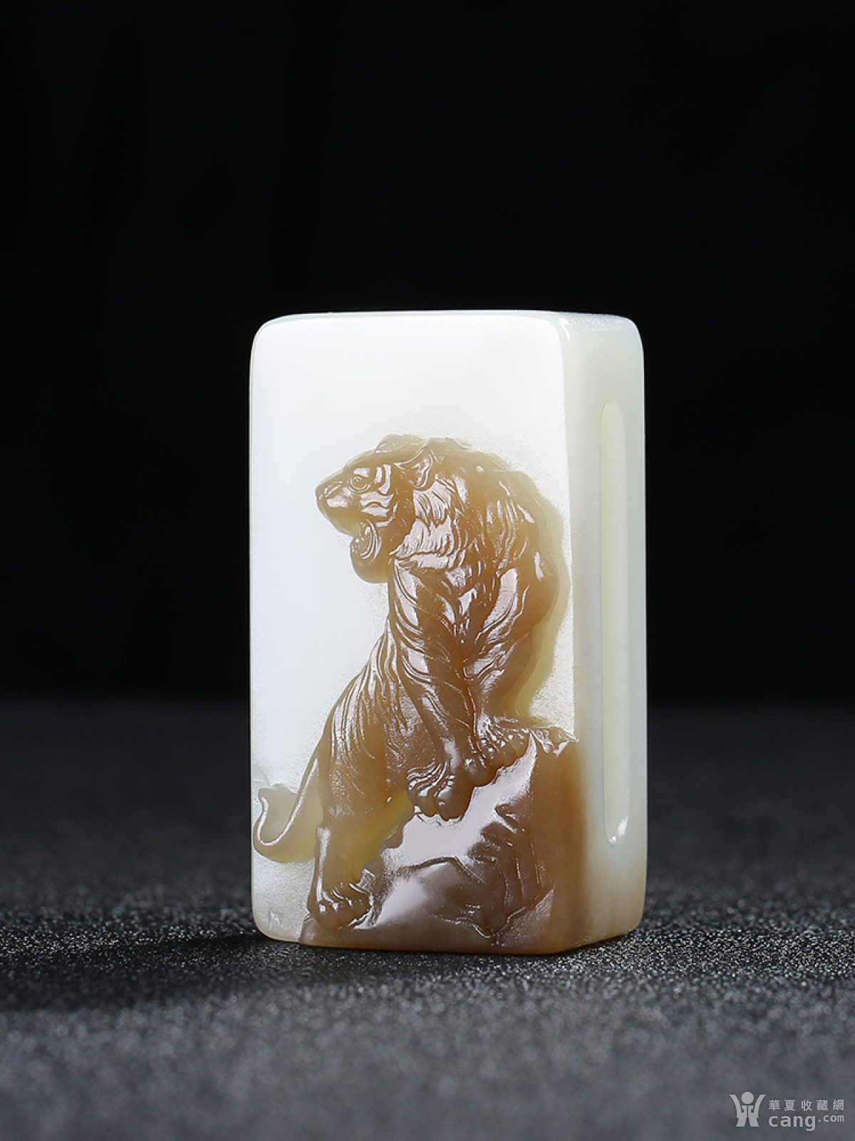 [糖羊脂白玉]和田玉糖白玉虎虎生威生肖虎皮带扣84.90g