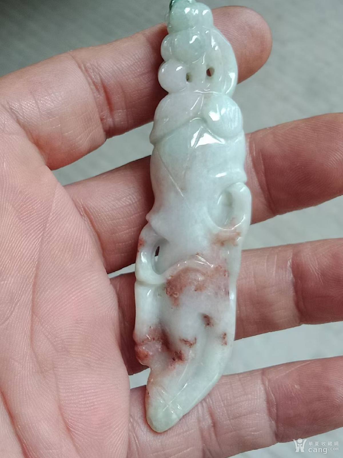 缅甸翡翠A4428-2A福禄寿三彩千年老山参手把件(送证书)