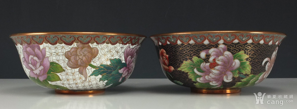 海外回流—民国—铜胎掐丝珐琅—花绘纹碗(一对)