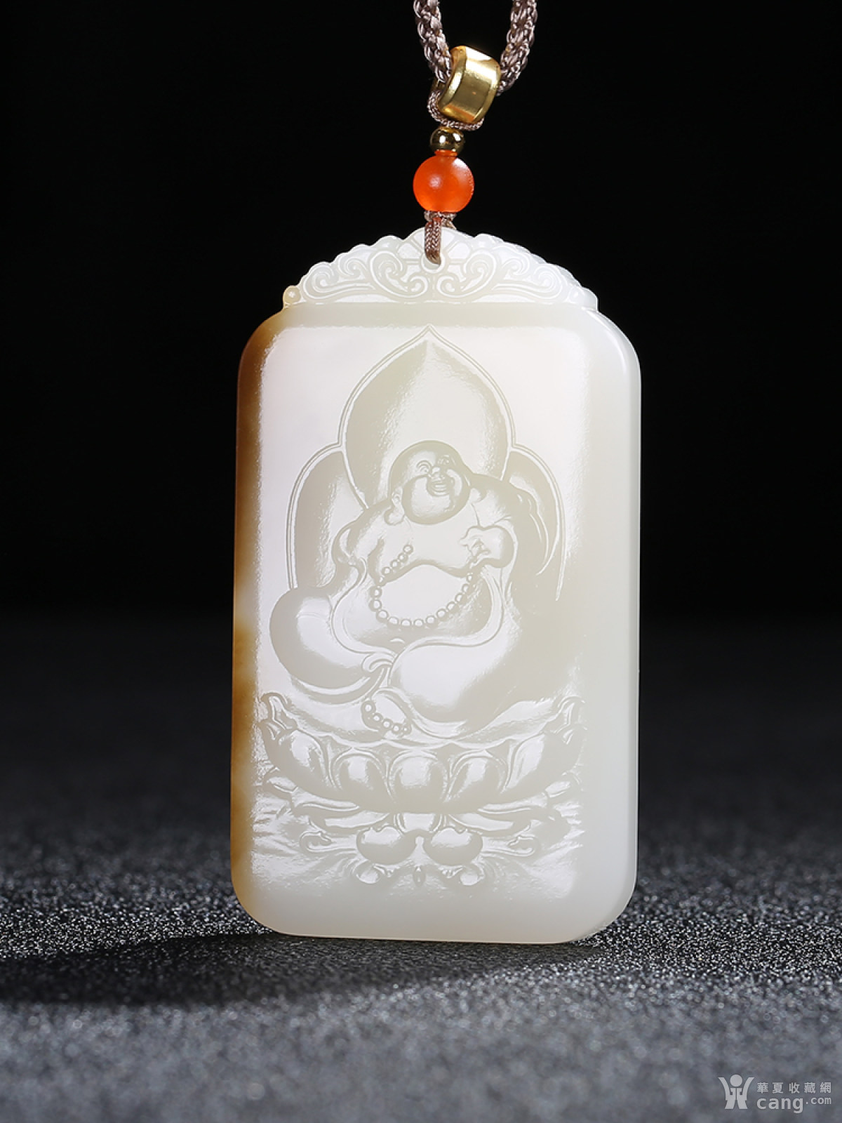 [佛佑一生]和田玉糖白玉弥勒佛莲花仿古瑞兽牌子挂件吊坠g