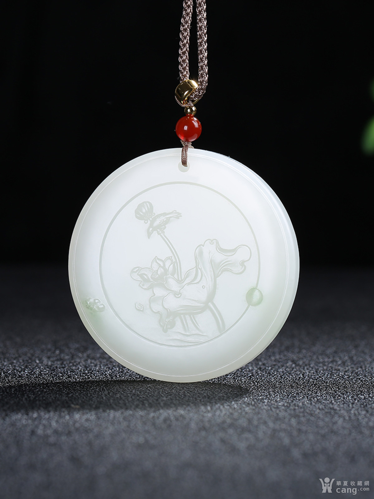 [翠鸟莲香]和田玉白玉带翠莲花鸟儿牌子挂件吊坠g