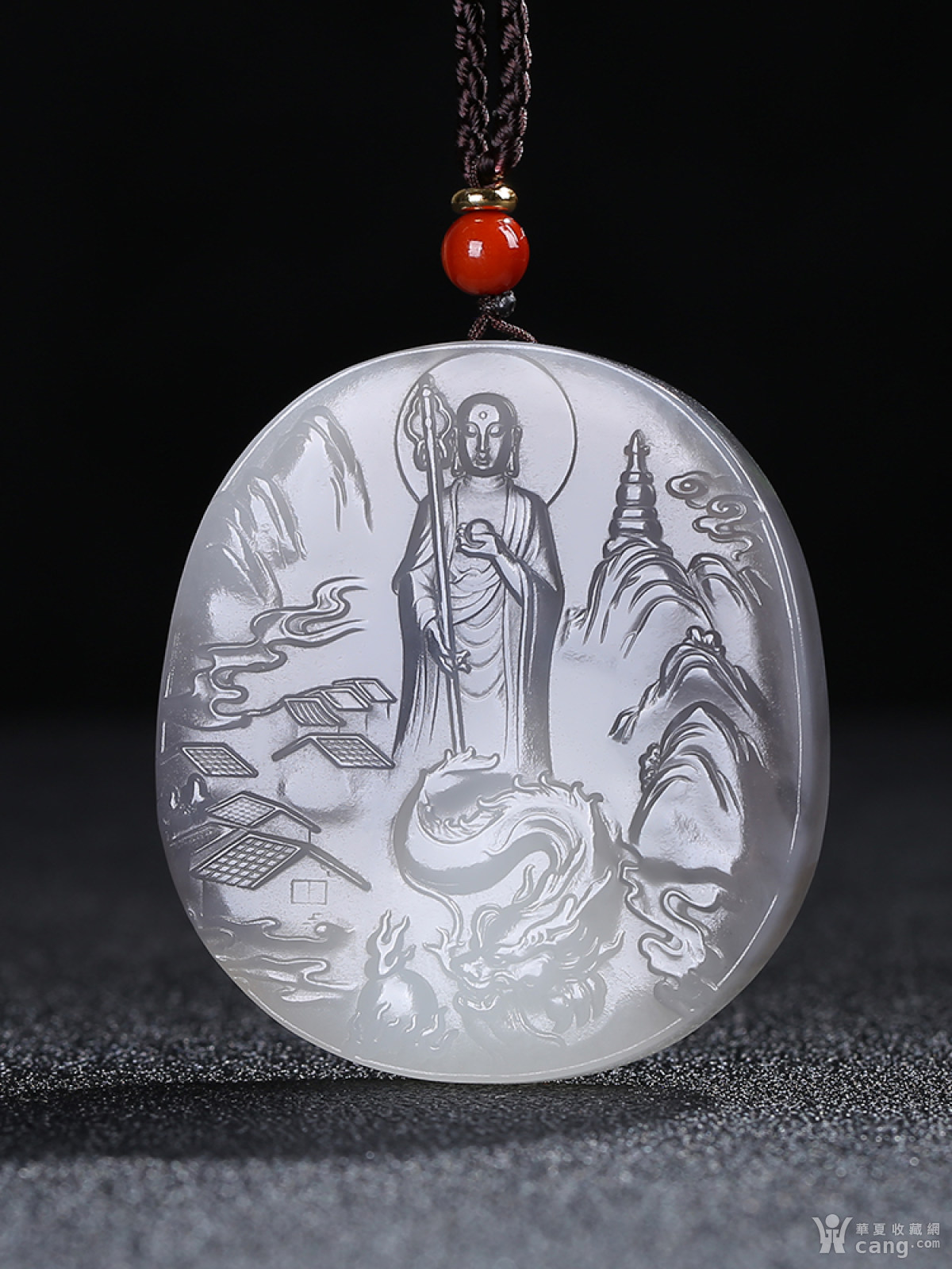 [佛光普照]和田玉烟灰白玉弥勒佛生肖龙山水牌子挂件吊坠g