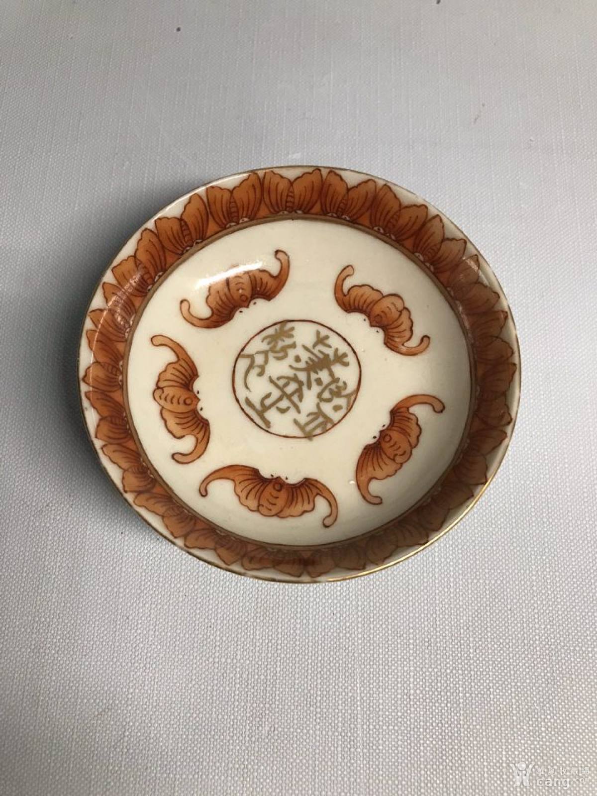 官窑内造矾红五蝠小笔舔 清代精品矾红五蝠