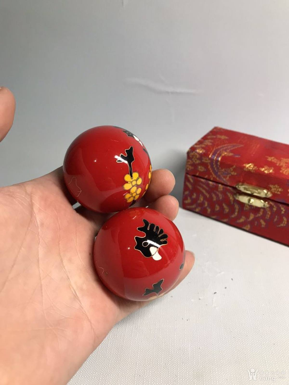 创汇时期铜胎景泰蓝喜鹊登梅健身球一对