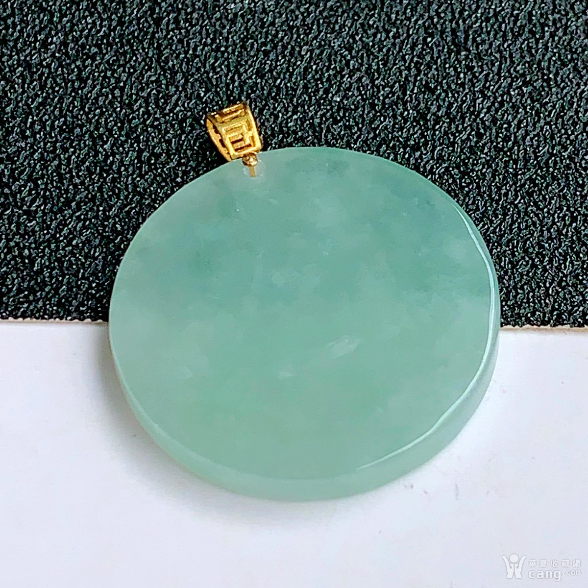 缅甸天然翡翠A货18k金扣冰透满绿平安牌吊坠
