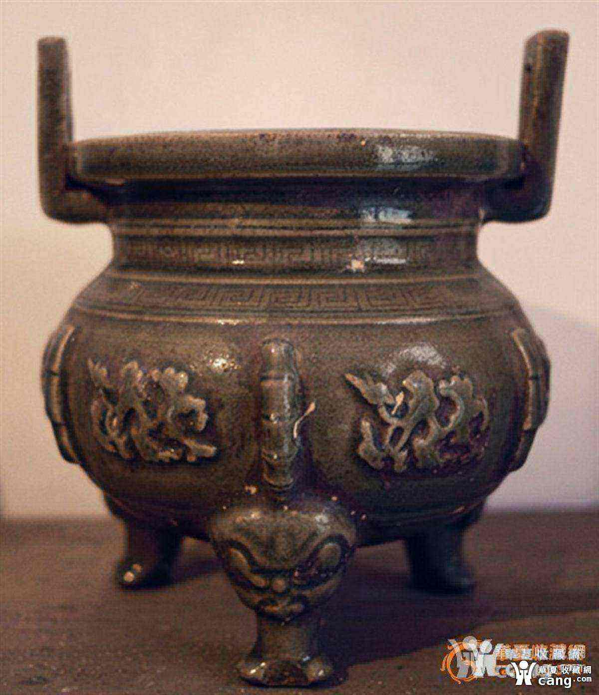 刻花贴花绿釉香炉