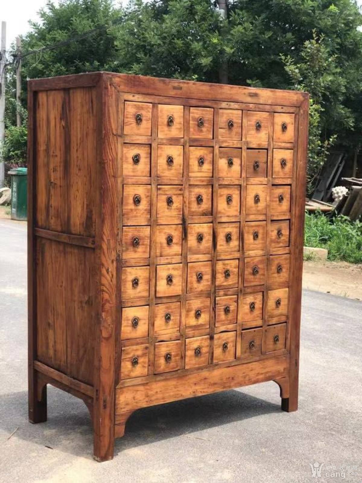 清代,老榆木药柜一件,造型独特,尺寸精致,一屉四斗,品相牢固