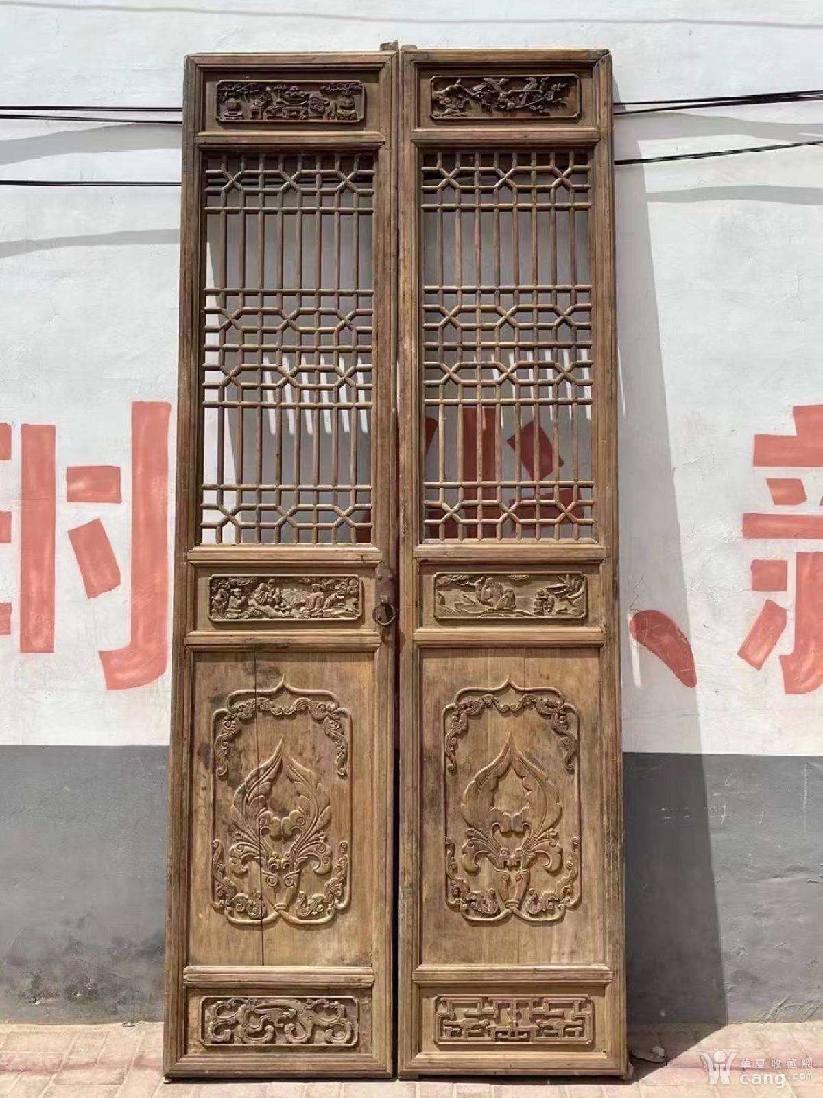 精雕细琢~门两片 尺寸:高 288 不含木轴 宽 60 楠
