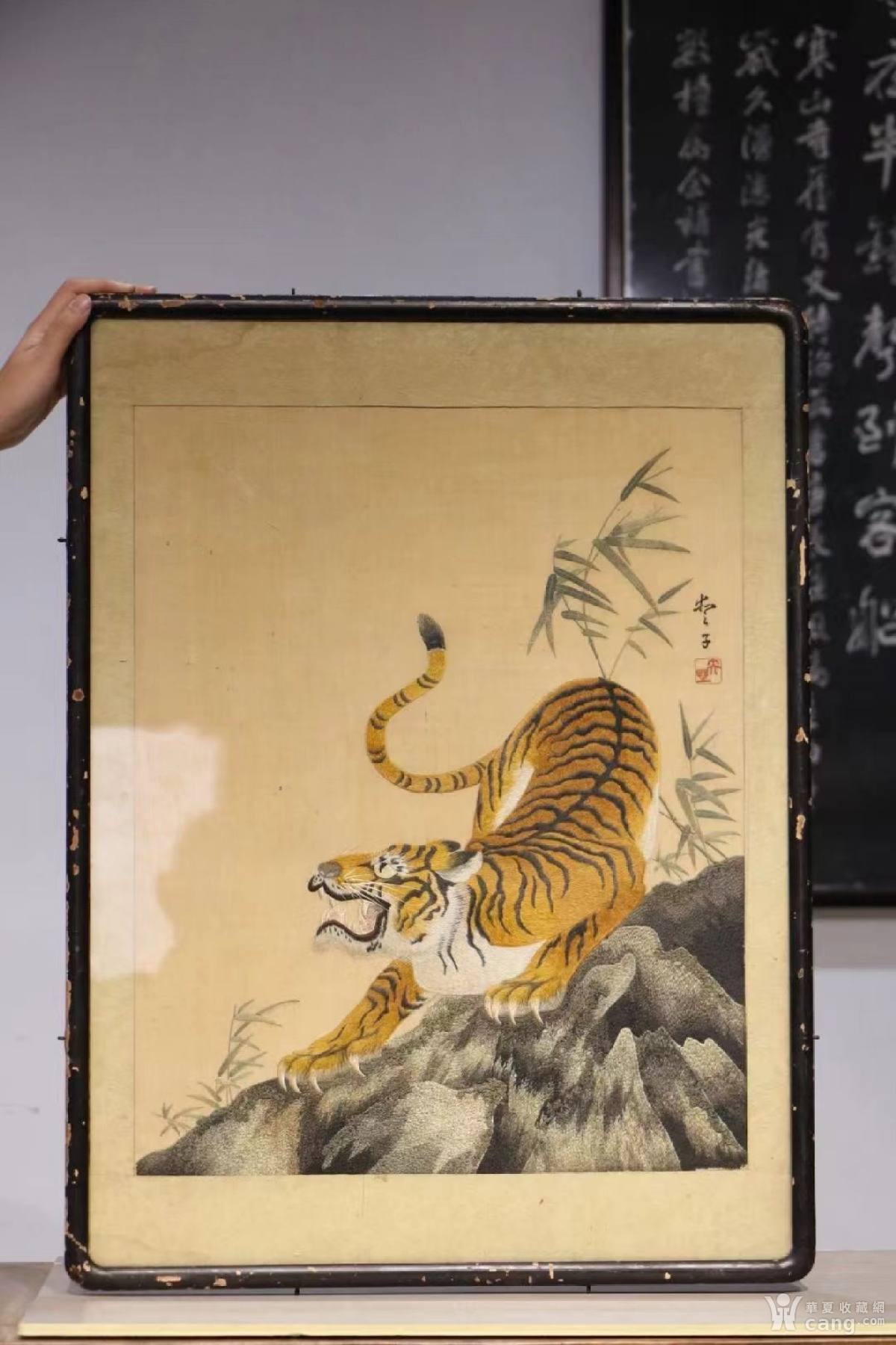 清代刺绣|虎啸山林 此器为清代刺绣,工艺精