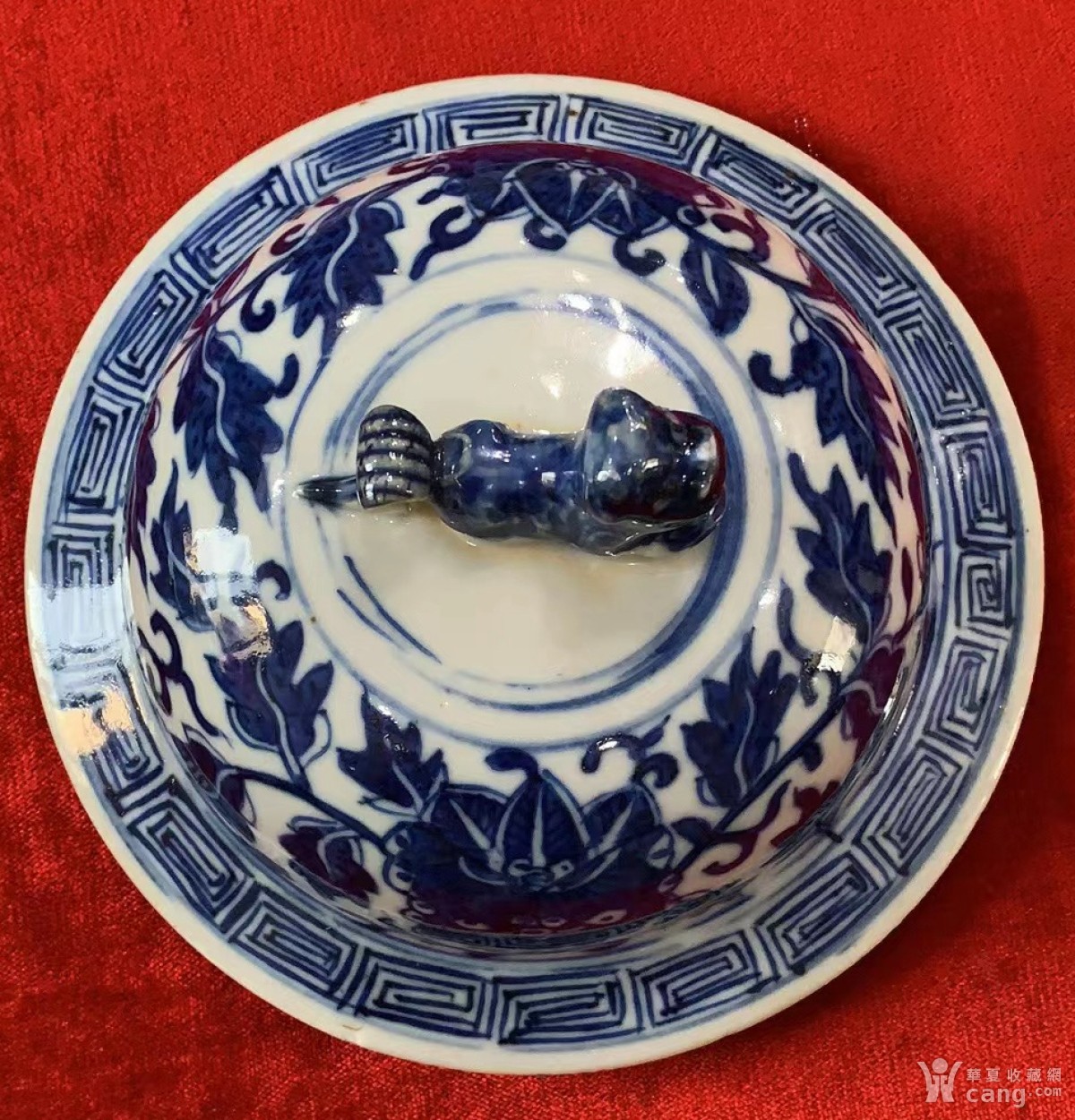 10296#古玩瓷器清代中期青花将军罐盖子少见蝴蝶花卉緾枝纹
