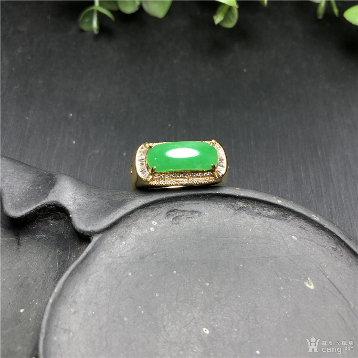 I099天然A货 18金伴钻镶老坑种满绿翡翠马鞍戒指