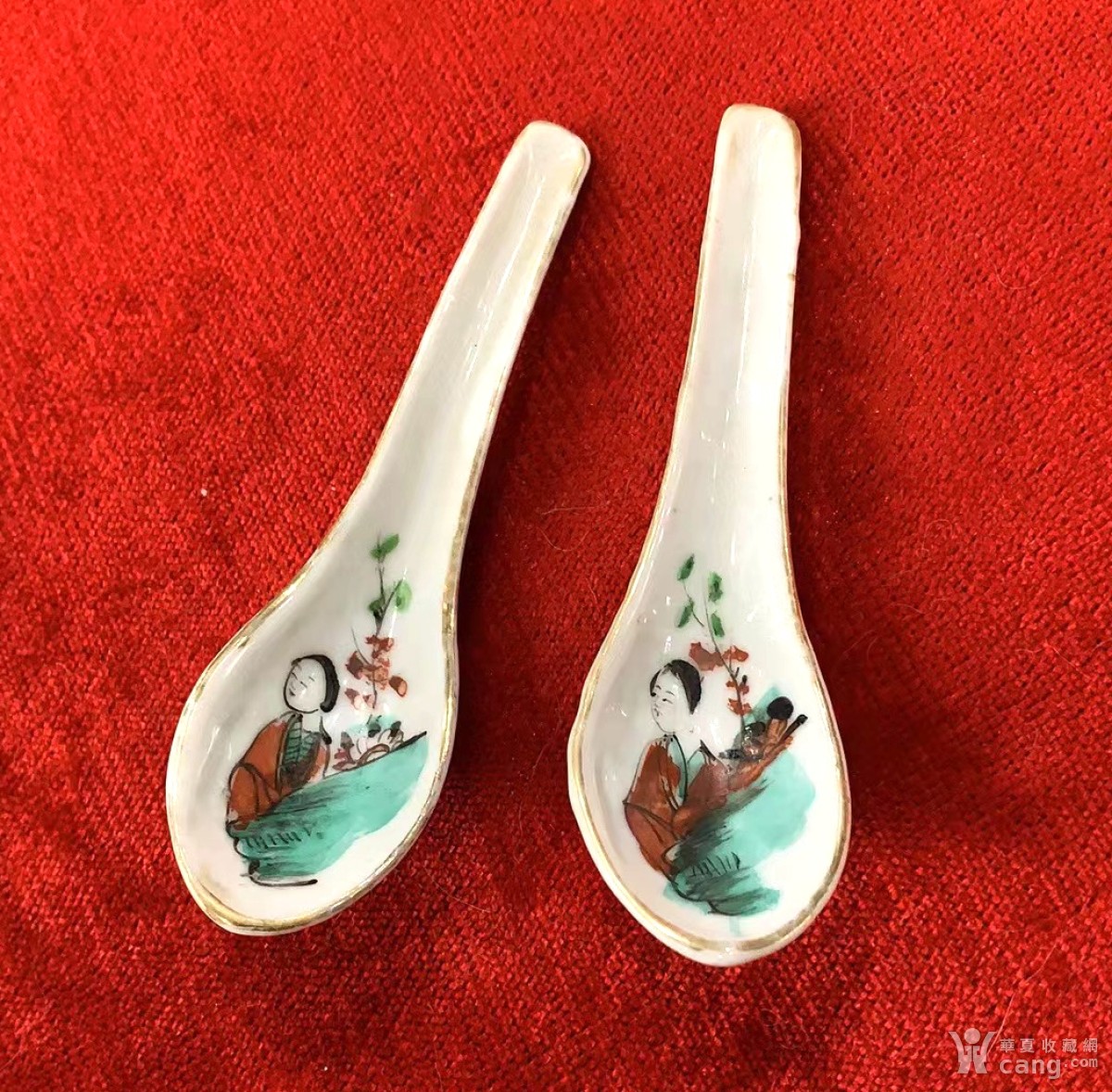 110#古玩景德镇瓷器收藏餐具调羹粉彩仕女人物图支钉烧调羹