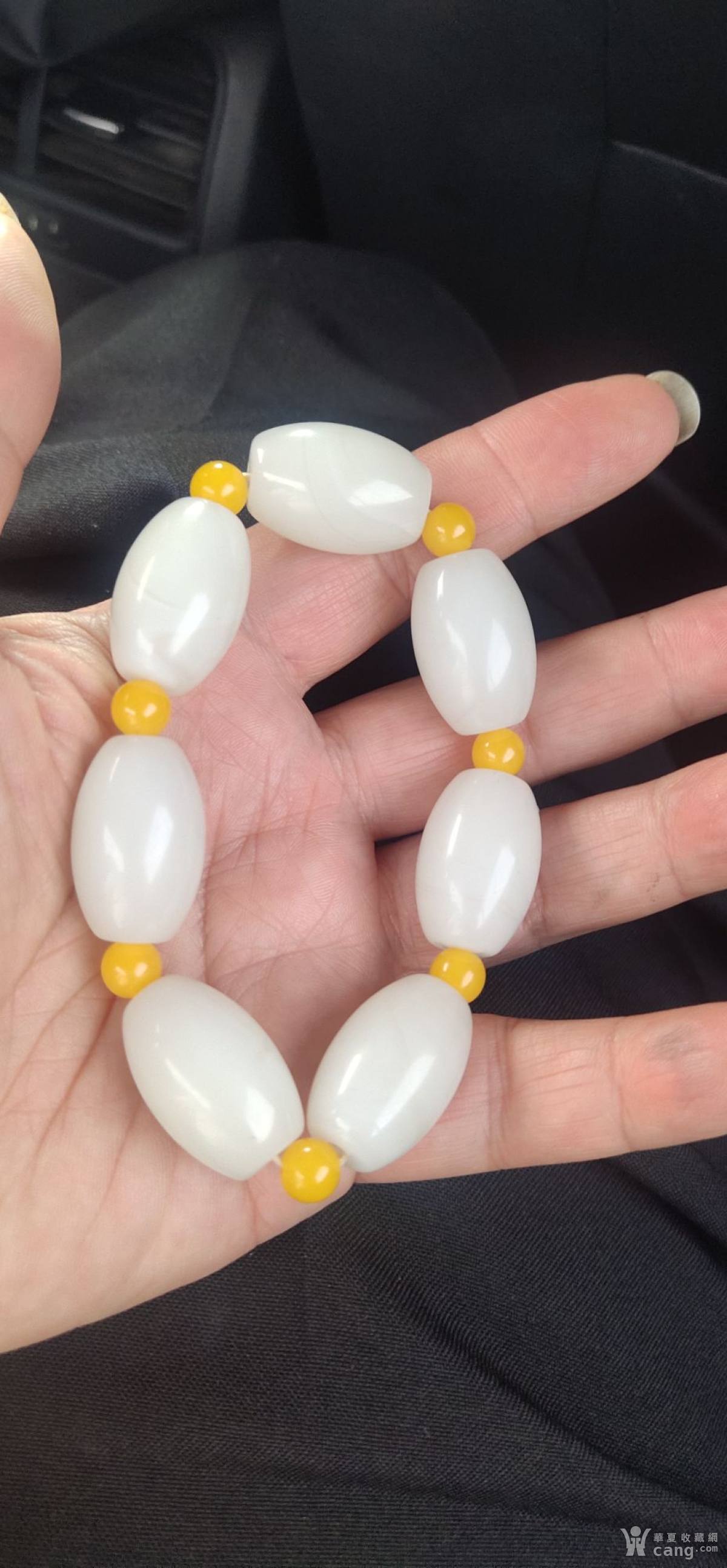清代白色琉璃手串一个,完整。
