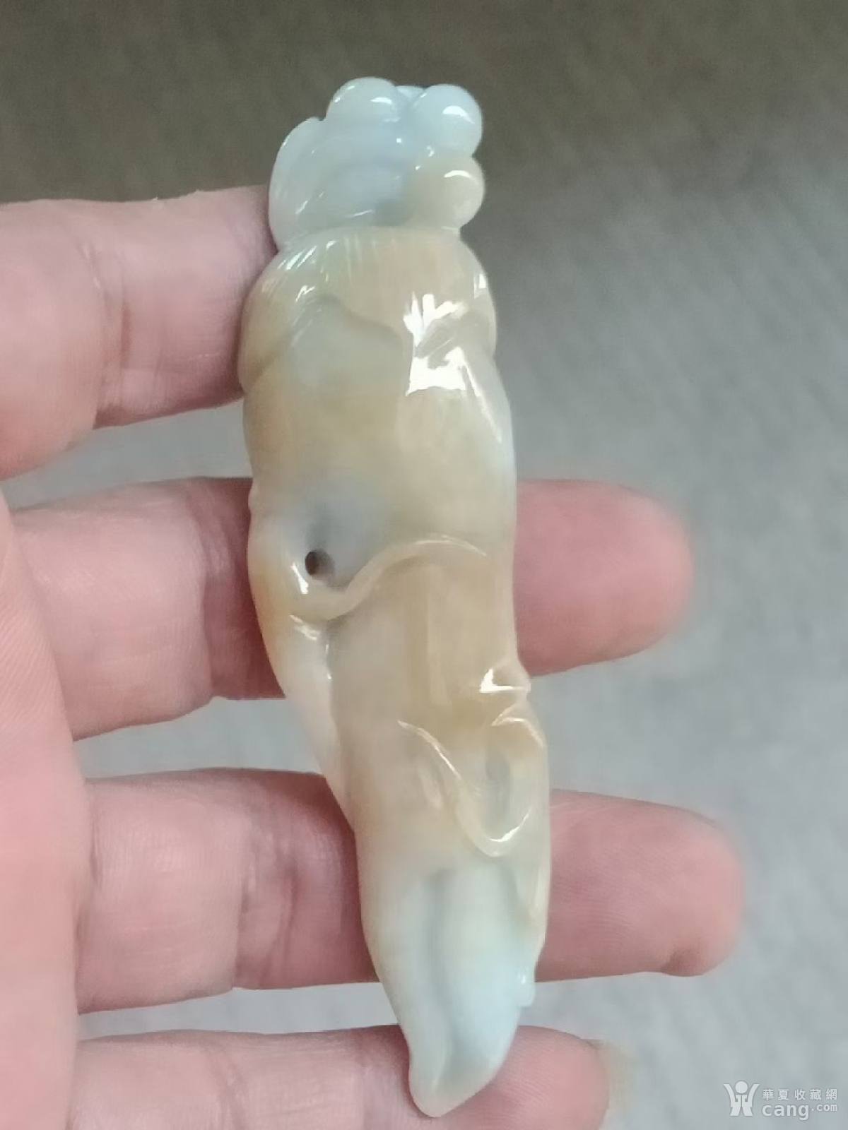 缅甸翡翠A4440-2A福禄寿三彩千年老山参手把件(送证书)