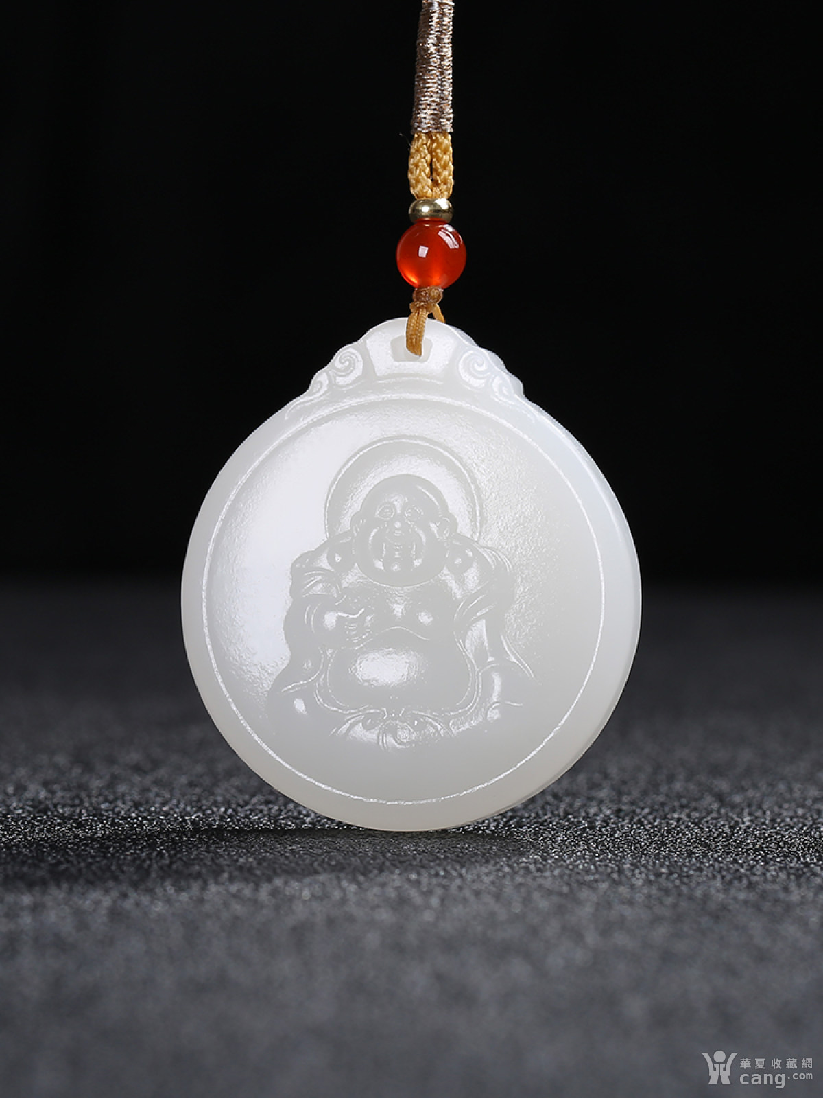 [羊脂白玉]和田玉白玉弥勒送福弥勒佛仿古牌子吊坠36.50g