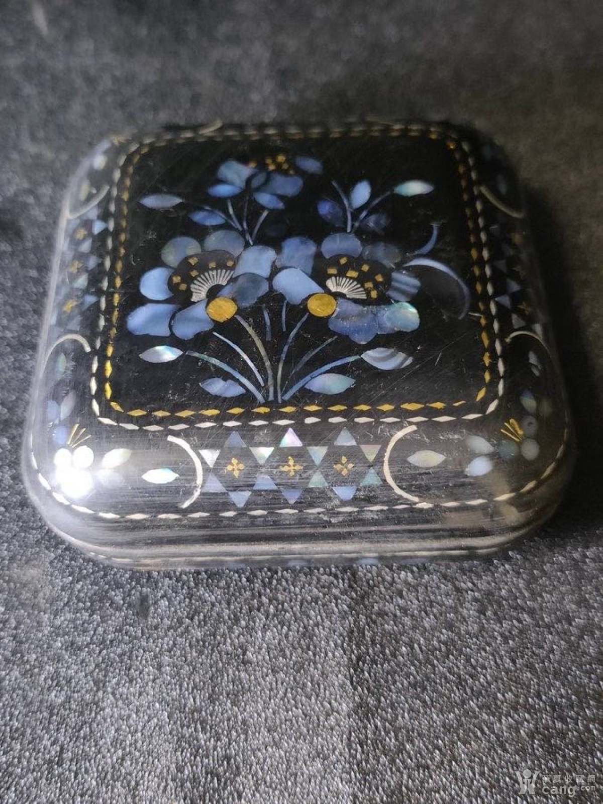 民国时期漆器镶嵌螺钿印油盒,工艺复杂细腻、花卉纹饰精美