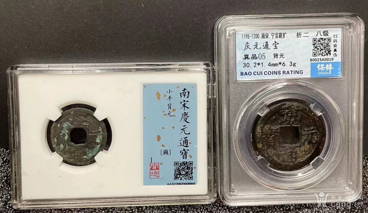 庆元通宝背三:小平+折二-1对2枚