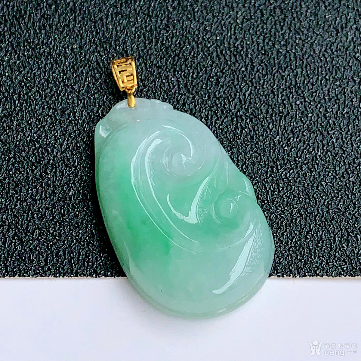 缅甸天然翡翠A货18k金扣冰透飘绿如意吊坠