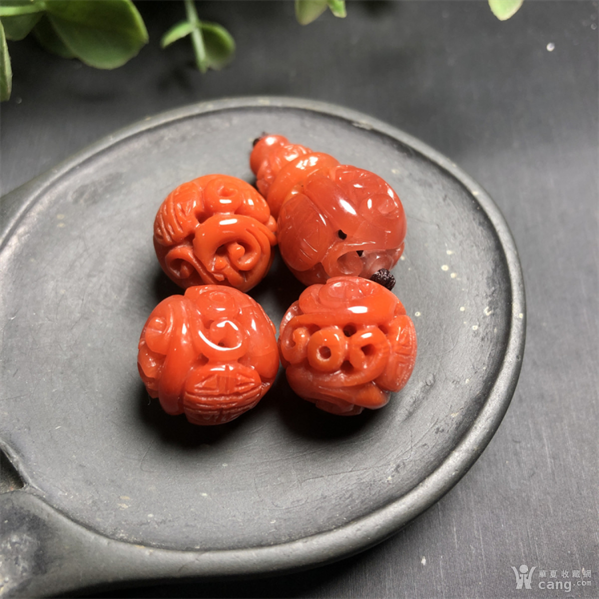 F513创汇期精雕团寿龙纹南红玛瑙三通佛头一套