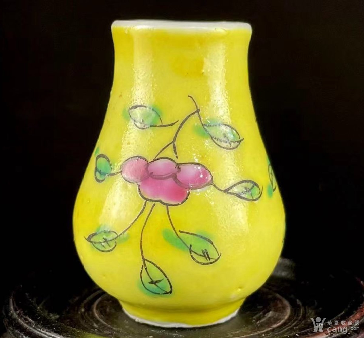 10496#古玩老货真品开门瓷器清代中期黄釉花卉纹粉彩微型瓶
