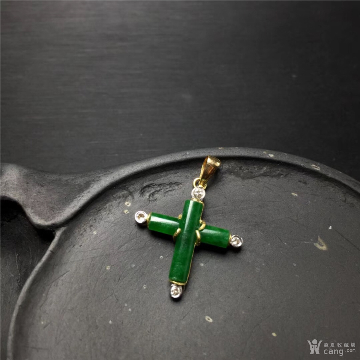 a271香港回流18K金镶满绿翡翠十字架吊坠