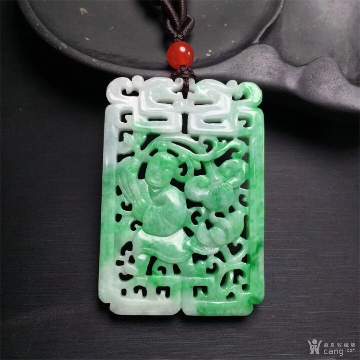 x731天然A货白地青飘阳绿翡翠双龙 执荷童子 挂佩