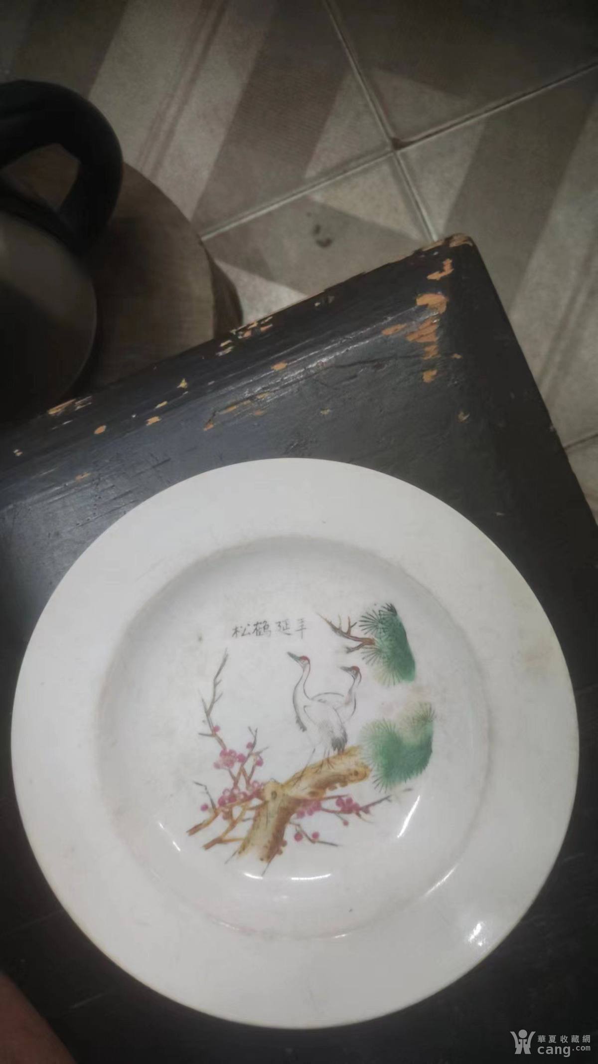 唐山窑手绘(松鹤延年)松鹤梅图粉彩碟(直经公分完美)