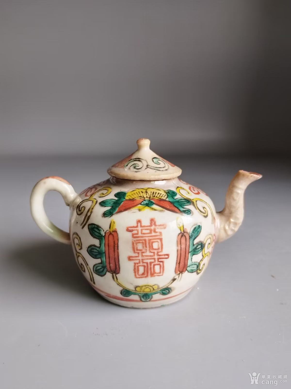 晚清粉彩瓜果喜字小壶