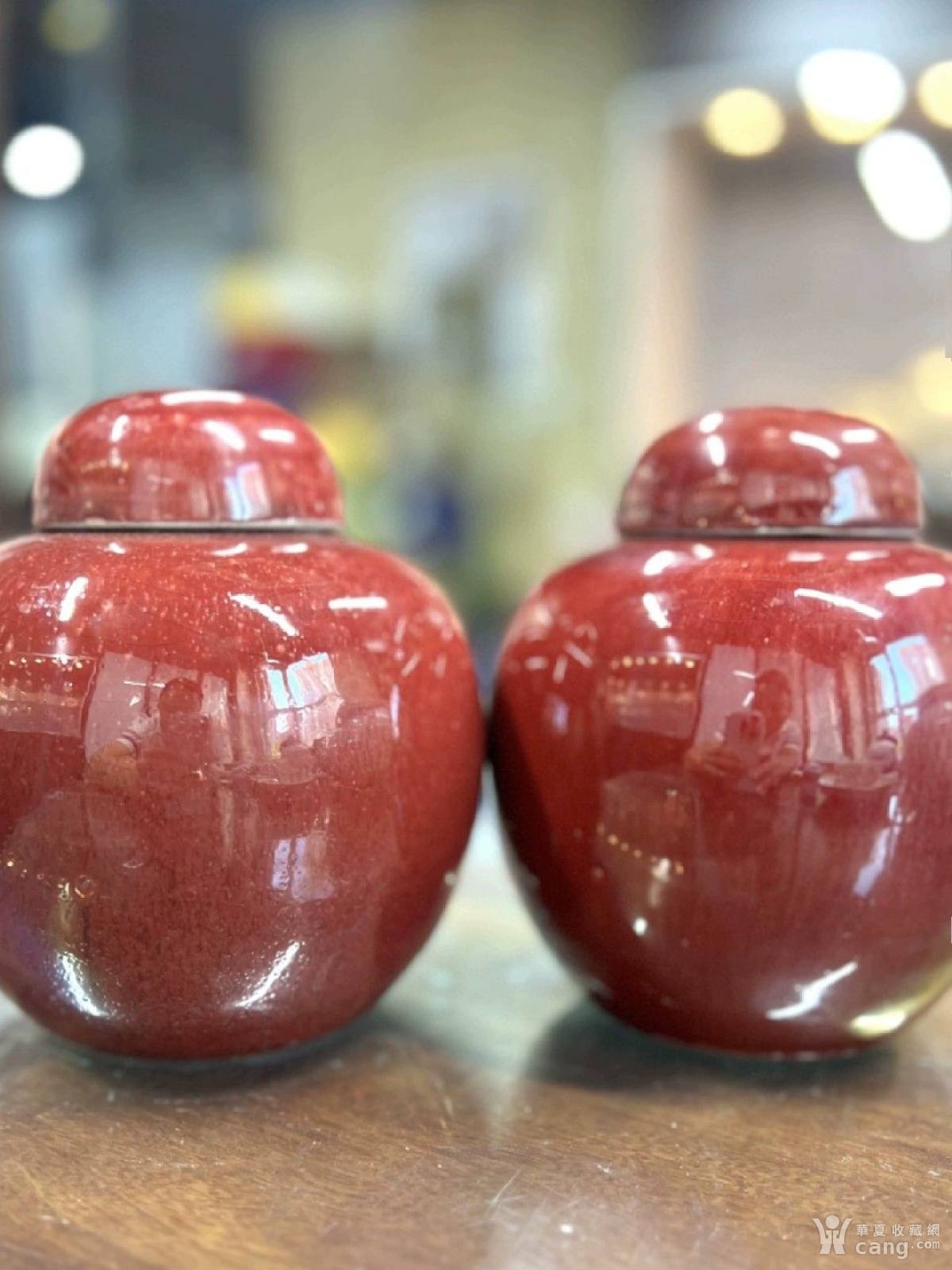 清中期精品郎红釉盖罐一对 古董古玩古瓷收藏包老保真单色釉精品