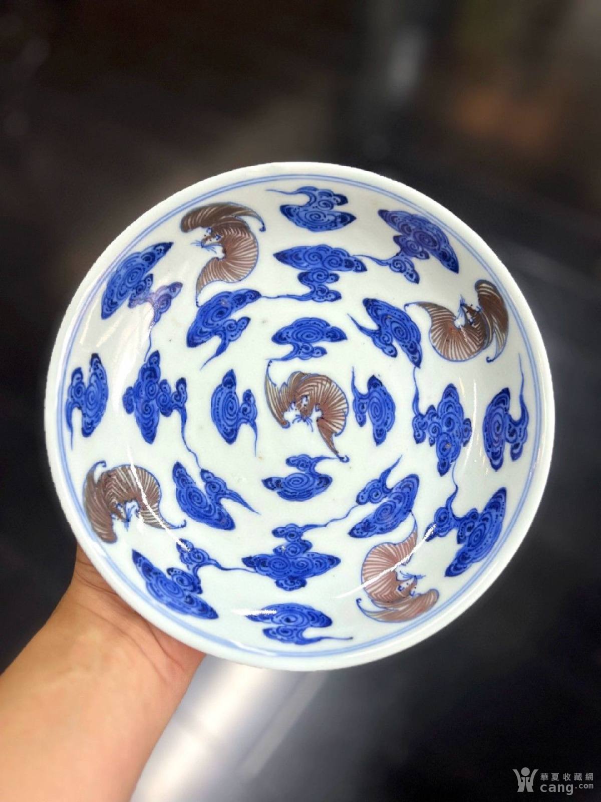 清乾隆精品青花釉里红云蝠纹盘 古董古玩古瓷收藏包老保真清三代