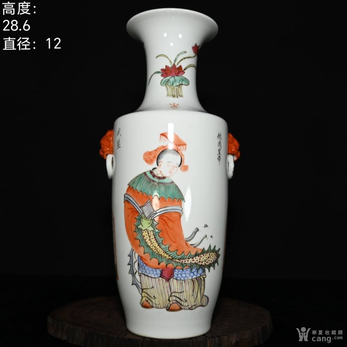 大清咸丰年制粉彩人物故事无双谱虎头花瓶。