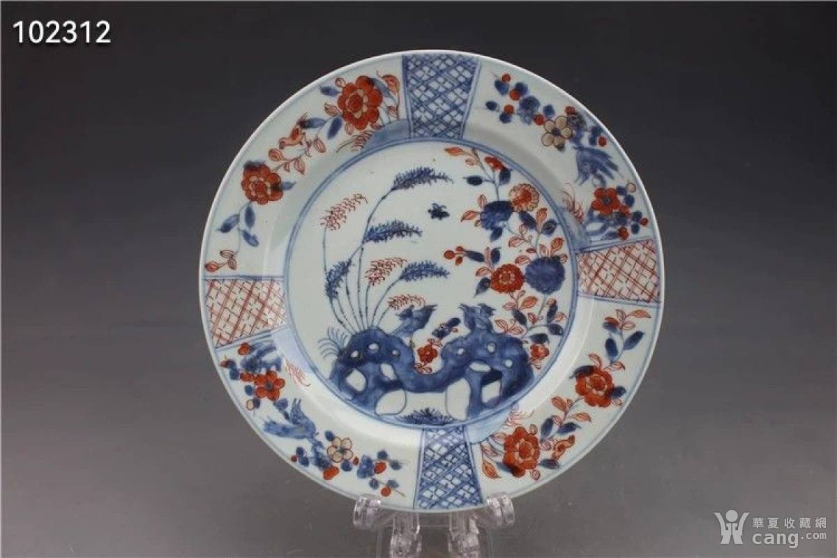 清康熙矾红描金竹林花卉洞石赏盘,古董收藏,明清瓷器