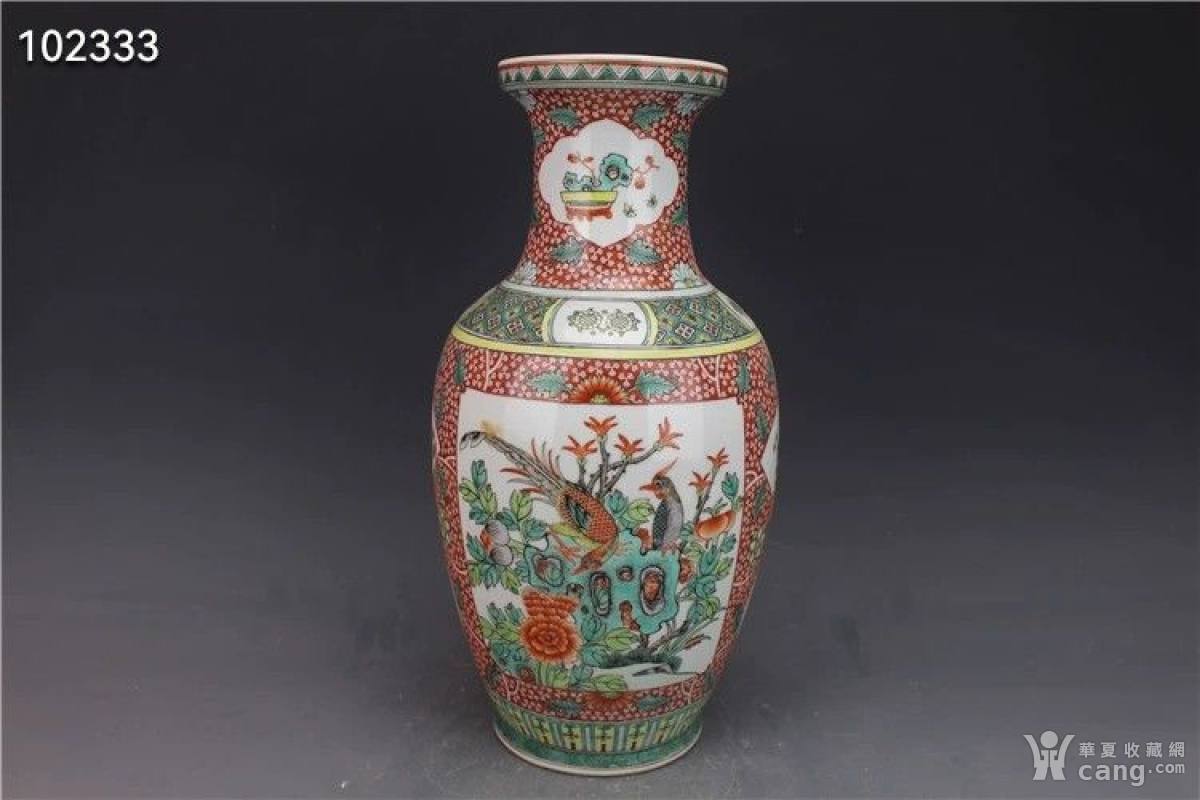 民国矾红五彩锦上添花赏瓶,古董收藏,明清瓷器,回流精品