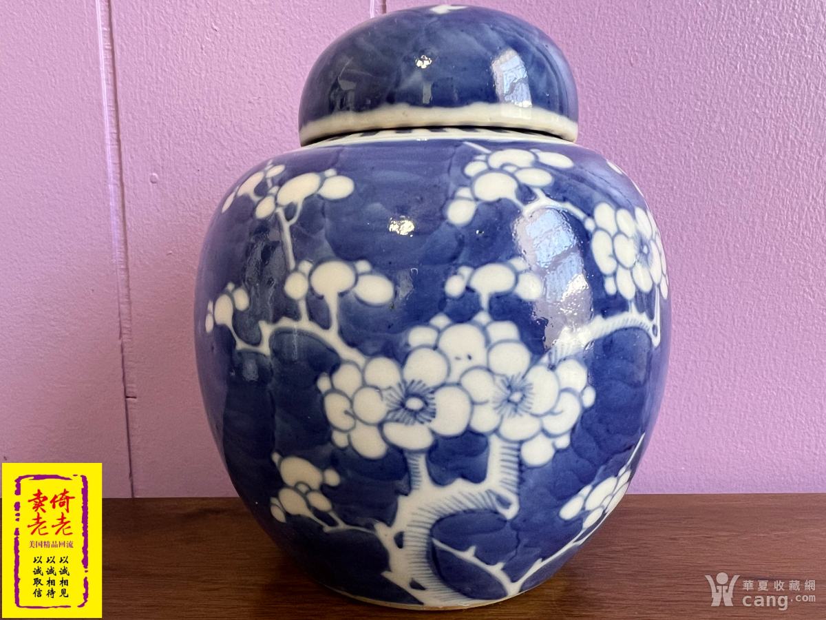 ★【赏心悦目】晚清光绪青花留白冰梅盖罐(双款)★874