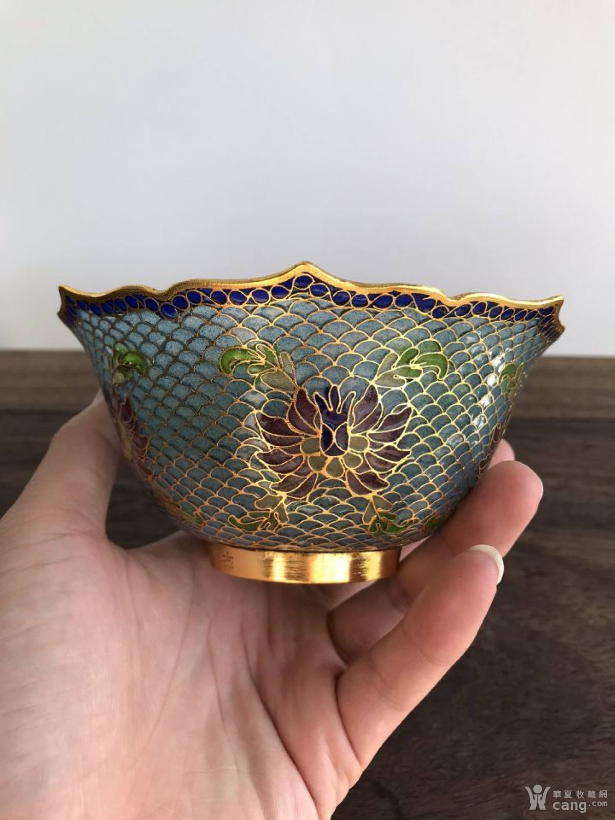 创汇时期景泰蓝透明蓝葵口碗