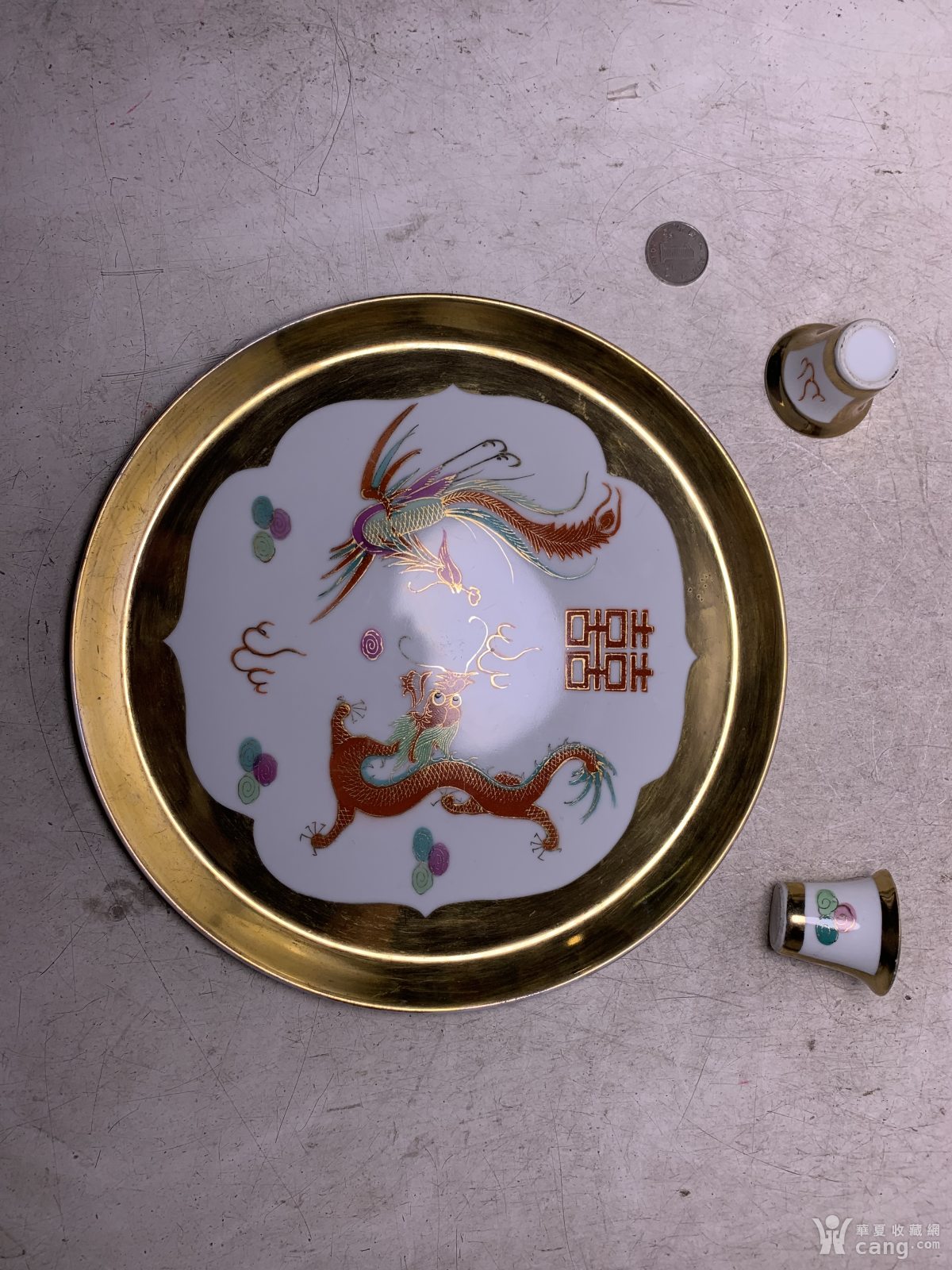 七八十年代粉彩描金龙凤茶盘送2马蹄杯