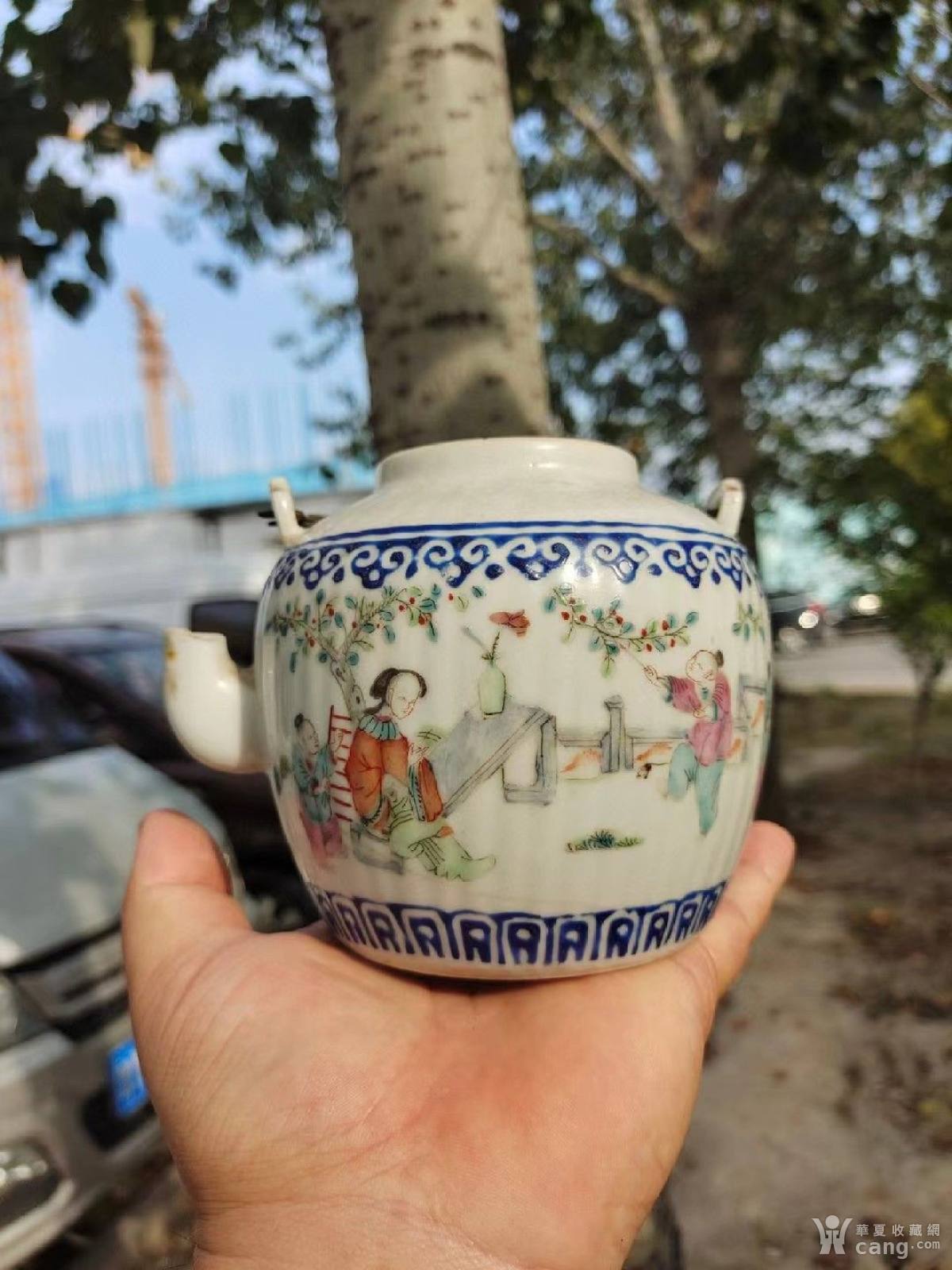 清代五彩人物茶壶,画工好,题材少见,瓷质好,很好的收藏标本